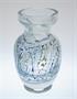 Hutní váza z čirého skla, vyrobená pravděpodobně jen v jediném exempláři se zataveným žlutým dekorem a jemnou modrou tkaninou ze skelných vláknem. Autorem je pedagog a sklářský výtvarník prof. Jaromír ŠPAČEK ( *1911 +1988 ), velký průkopník nových sklářských technik (je nositelem celkem 13 významných technologických patentů v dekorování skla). Práce z Nového Boru kolem roku 1970. Dobrý stav, rozměr v. 21cm, prům. 12cm, hmot. 2,1kg