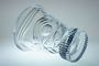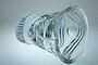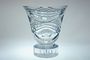 Luxusní objekt - váza otevřeného tvaru stojící na masivní patce dekorovaná organickým leštěným brusem vln a olivek. Čiré křišťálové sklo z druhé poloviny minulého století, ručně leštěný brus tvoří proti zdroji světla duhové efekty lomem spektra. Dobrý stav, rozměr - v. 18cm, prům. 15,5cm, hmot. 2,5kg