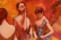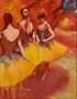 Dle obrazu Edgara Degase Three Dancers in Yellow Skirts. Olej na plátně 44 x 34 cm. Rám výška 53 cm. Dole monogram a popiska Mé lásce s vročením.