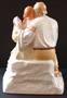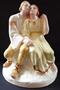 Malovaná fajáns. Sedící mladý muž a mladá žena, oblečených ve venkovském oděvu. Držící se vzájemně za ruce, s náznakem objetí. Dívka se šátkem na hlavě, sedící po levé ruce muže, opírající se o jeho rameno. Značeno zespodu - černě tištěná firemní značka KS Bechyně, Made in Czechoslovakia, vtlačené číslo 472 XII. Autor sochy - Josef Kalvoda, před rokem 1925. Bechyně, keramická akciová společnost, Československo 1922 - 1941. Výška 28 cm, šířka 22 cm.
