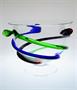 Větší velmi dekorativní mísa z čirého hutního skla, které je obtáčené barevnými nálepy s názvem "116". Mísa stojící na patace je zušlechtěna nálepy v odstínu - rubín, kobaltová modř a zelený Oceanit. Autorské hutní sklo od světově proslulého huťmistra a sklářského výtvarníka - Petr NOVOTNÝ ( *1952 Ústí nad Orlicí ), spoluzakladatel a umělecký ředitel sklárny AJETO. Provedení kolem roku 2000. Dobrý stav, rozměr - v. 27cm, prům. 18,5cm