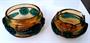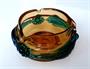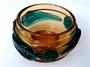 Autorské hutní sklo. Ambrové sklo s velkými nálepy z kobaltově modrého skla. Autor Josef Michal Hospodka. Popelník průměr 17 cm, mísa 20 cm. Nepoškozeno.