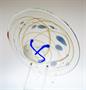 Velmi neobvyklé staré hutní sklo ze 60-70tých let s čirým jádrem ve kterém je zatavený organický barevný dekor. Větší a masivní mísu provedla sklárna Ústředí uměleckých řemesel ve Škrdlovicích, autor nezjištěn. Dobrý stav, rozměr prům. 30cm, v. 6cm, hmot. 2,4kg