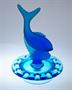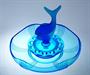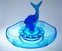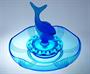 JEZÍRKO - Stylová trojdílná souprava z barevného ručně lisovaného a matovaného skla v odstínu kobaltová modř, ve stylu ART - DECO na aranžování krátce střižených květů. Mísa se napustí vodou, do drobných otvorů se vloží květy na způsob leknínů a obklopují rybu, která je jako stylizovaný chrlič vody ve fontáně. Dekorativní soupravu ze 30-40tých let provedla sklárna Josef INWALD Teplice, autorem je pravděpodobně sklářský výtvarník Rudolf SCHRÖTER ( *1887 ), Dobrý stav, rozměr - prům. 30cm, v. 24cm