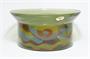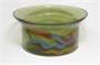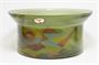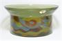 Větší mísa z topasového ( odstín - zelená smoke ) skla foukaného do dřevěné formy s abstraktním geometrickým dekorem, který lemují barevné tečky. Autorský objekt se vzácně dochovanou původní nálepkou ze 70tých let pochází od sklářské výtvarnice a pedagožky - Eva ŠVESTKOVÁ ( *1945 +2012 ), její tvorba je zastoupena v mnoha našich předních sklářských sbírkách. Provedla sklárna CRYSTALEX Nový Bor, dobrý stav, rozměr - prům. 25cm, v. 12cm