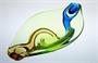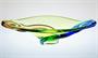 Krásně barevná mísa z kolekce hutního skla "OPERA ". Zelenkavé jádro je přejímané čirým sklem a mísa je zušlechtěná dvěma nálepy v odstínech Rosalin a kobaltová modř. Autorem návrhu z 1963 je sklářský výtvarník Karel ZEMEK (*1909 +1965), provedení sklárna Mstišov, nebo později Karlovarské sklo Moser. Dobrý stav, rozměr š. 33 x 18 x 8cm