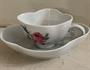 Mišenský šálek s podšálkem, porcelán malovaný klasickými míšenskými růžemi, glazovaný, , šálek miskovitý prolamovaný,délky 10,5cm,śířky 8,5cm. šálek šířka 6cm na 5cm,Výška šálku 4,5 cm,značeno modře podglazurně Míšeň. 19. století