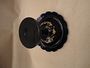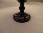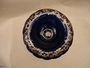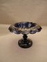 Miska na noze - nástolec, modré sklo, malovaný dekor, hezký stav, výška 12,8 cm, průměr 17,7 cm