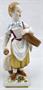 Bílý, barevně ručně malovaný a zlacený porcelán. V rokokovém stylu. Porcelánka Berlín. Porcelánová soška stojící dívky s bílým šátkem s modrými pruhy uvázaným kolem krku. Čtvercový podstavec se zlatou linkou. Značeno zespodu: modré žezlo, vtlačené číslo modelu 530, písmeno S. Německo, Berlín 1790 - 1840. Výška 15,5 cm, šířka 7,5 cm, průměr podstavce 4,5 cm.