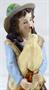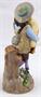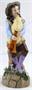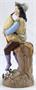 Bílý, barevný, ručně malovaný porcelán. Ernst Bohne Söhne, Porzellanfabrik založeno roku 1854. V romantickém stylu. Tančící mladý muž v klobouku hrající na dudy. Klenutý kulatý podstavec s reliéfními bílými květy s listy. Značeno zespodu : vtlačená písmena EBS a čísla, modrá kotva. Německo 1878 - 1900. Výška 20 cm. Ernst Bohne Söhne, Rudolstadt.