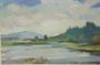 Panorama krajiny - výborně "nahozená" moderna, obraz s motivem přírodní scenérie ve které autor mistrně rozehrává poetickou náladu barev. Malíř a grafik pocházející a tvořící ve východních Čechách Jiří ŠVEC ( *1928 ). Olejomalba na desce ve stylovém masivním rámu v paspartě pod sklem, autorem sign. a dat. l.d. Dobý stav, celkový rozměr - 85 x 51cm, rozměr díla - 57 x 25cm