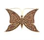 Monumentální originální brož ve tvaru motýla zhotovená z pozlaceného stříbra o ryzosti 925/1000 osazena českými granáty. Celková hmotnost je 22,0 g. Rozměry 7 x 5 cm.