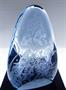 Větší masivní skleněný objekt, oválný blok akvamarínového skla, který je zušlechtěný bravurní hlubokou rytinou s motivem "Mořský svět". Na jedné ploše je dekor mořských rostlin a na druhé plejáda mořských živočichů: koník, chobotnice, hvězdice a hejno ryb. Jedná se pravděpodobně o produkci sklárny Moser Karlovy Vary ze 70tých let. Dobrý stav, rozměr v. 26 x 17 x 6cm, hmot. 3,5kg