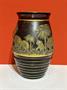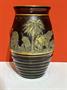 váza z tmavě ametystového skla zdobená zlacenou oroplastikou s motivem slonů,