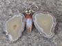 Art deco,stříbrná brož,tělo a křídla vyplněná leštěným achátem,rozměr 4,8x3,5 cm,Ag 800/1000,váha btto 8,3 g,značeno na háčku značkou pro staré zboží(dubový list s žaludem).