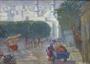 Olejová tempera na kartonu 25x33 cm. Nesignováno. Figurální městská scéna s motivem trhu v arabském městě s věžemi minaretu, bílými budovami a stinnými stromy. Stříbrný rám se zdobenými lištami s ornamenty a sklem. Evropa 1910 - 1940. Celkový rozměr s rámem 34,5 x 42,5 cm.