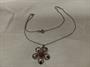 Náhrdelník vyrobený ze stříbra ryzosti 835/1000 . Kytička v průměru 3 cm, uprostřed s červeným kamenem. Řetízek v délce 40 cm .Celková hmotnost je 4,73 gr.