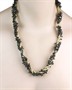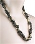 Masivní velice výrazný náhrdelník s hematity, dlouhý asi 54 cm. Náhrdelník zdobí perletové korálky, které nápadně kontrastují s černým hematitem.