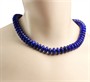 Náhrdelník z pravého lapisu lazuli, který vyniká svou sytě modrou barvou a elegantním designem je zakončen zdobným uzávěrem ze zlata ryzosti 585/1000. Šperk je složen z korálků broušených do tvaru disků (rondellek), o průměru 1 cm. Jedná se o velice kvalitní polodrahokamy výrazně sytého odstínu. Délka 43 cm. Perfektní stav.
