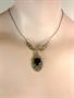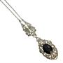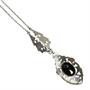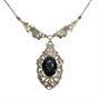 Zdobený secesní náhrdelník zdobený onyxem. Rozměry závěsu 4 x 2 cm, Délka náhrdelníku 44 cm. Celková hmotnost 6,90 g. Náhrdelník je z obecného kovu.