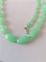 Náhrdelník z uranových korálků proložených drobnými korálky z čirého skla, délka 58 cm, šířka středového korálku 1,5 cm