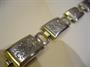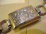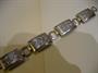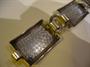 Masivní stříbrný náramek, stříbro 800, hmotnost 22 g, délka 18,5 cm. Pérový kroužek funkční, ale je deformovaný od protikusu, na jednom článku škrábanec - není hluboký. Šířka náramku 2 cm.