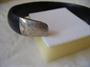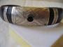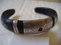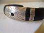 Otevřený náramek z černého dřeva zdobený stříbrem, středová šířka 2 cm, vnitřní rozměr náramku 6,5 cm, celková váha náramku 13,60.