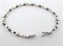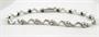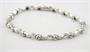 Bílé 18 karátové zlato, přírodní diamanty. Ryzost Au 750 / 1000, celková hmotnost 12,25 gramů. 15 přírodních diamantů moderního briliantového brusu o celkové váze 0,15 ct, barva G-H-I , čistota Si. Náramek z bílého zlata ve střídavé kombinaci korunek se vsazenými přírodními diamanty moderního briliantového brusu a esovitě tvarovaných článků. Značený : ryzostí 750, československým puncem hlava kohouta s číslem 3. Evropa druhá polovina minulého století. Délka 19,5 cm.