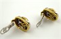 Osmnáctikarátové žluté a bílé zlato, přírodní středomořské korály a přírodní diamanty. Ryzost Au 750/1000, celková hmotnost 19,00 g. Masivní náušnice ze zlata dvou barev, žluté a bílé, s centrálními většími středomořskými korály lemovanými dvaceti přírodními diamanty moderního briliantového brusu o celkové váze 0,15 ct, barva G, čistota Si. Značeno: český punc kohout, ryzost 750 a mistrovská značka. Itálie, Alessandria, přelom 20. a 21. století. Délka 20 mm, šířka 15 mm.