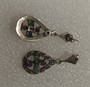 Náušnice stříbro ryzosti 750/1000, zdobené smaragdy, rubíny a markazity . Pokoveny vrstvou niklu . Délka 3,5 cm . Hrubá hmotnost 6,99 gr.