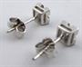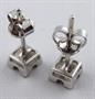 Bílé 18 karátové zlato, dva přírodní diamanty. Ryzost Au 750 / 1000, celková hmotnost 2,15 gramů. Náušnice z bílého zlata čtvercového tvaru. Zdobené leštěnými a prořezávanými plochami. Uprostřed vsazené dva přírodní diamanty moderního briliantového brusu o hmotnosti 0,20 ct, čistota Si, barva G - H. Uzávěr náušnic na klenotnickou puzetu. Značeno : nový český punc hlava kohouta s číslem 3, ryzost 750, italská mistrovská značka. Itálie, druhá polovina minulého století. Délka 15 mm.