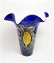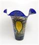 Větší váza neobvyklého tvaru se široce otevřeným hrdlem z přejímaného kobaltově modrého skla s opálovým jádrem a s oboustranným organickým dekorem z kysličníků kovů na povrchu. Autorem návrhu je malíř, sochař a sklářský výtvarník Jiří ŠUHÁJEK (*1943), studoval u S. Libenského a na londýnské Royal College of Art. Jeho tvorba je zastoupena mnoha našich i zahraničních sbírkách. Provedení sklárna Crystalex Nový Bor kolem roku 1980. Dobrý stav, rozměr - v. 27cm, prům. 24cm