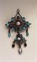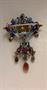 Šperk v renesančním duchu, nositelný jako brož nebo závěs. Stříbrný, smaltovaný, s barevnými kameny. Značeno rakousko-uherskou značkou pro stříbro, hlavou psa s číslem 3 pro ryzost 800/1000, puncovním místem A (Vídeň) a mistrovskou značkou HB (snad Heinrich Bohneberger). Váha 17,88 gr. Puncovní období 1866-1872.
