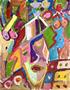 Neznámý autor, zajímavý, dekorativní, pestrý olej na kartonu o velikost malby 72,5 x 57 cm. Nesignováno, nerámováno.