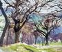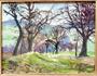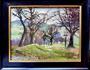 Zajímavý, signovaný olej na kartonu z počátku 20. století, rámovaný pod sklem, vlevo dole necitelná signatura vrypem do čerstvé barvy.