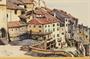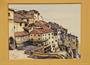 Domy v Nonze na skalnatém středomořském pobřeží na ostrově Korsika. Moravský autor zachycuje poetickou atmosféru na studijní cestě po jižní Evropě, podnikl jich celou řadu téměř po celém kontinentě, malíř, ilustrátor a grafik - Karel ŽIVNÝ ( *1899 Plzeň +1973 Zlín ), působil i jako redakční malíř a korektor u firmy Baťa ve Zlíně. Komb. technika na papíře v pěkném rámu, paspartováno pod sklem, sign. l.d. Celkový rozměr 47 x 40cm, rozměr díla 27 x 21cm