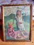 Olej na kartonu pod sklem - Děti v sadu , signováno Procházka ,dat. 15 ( 95). Původní rám .Celkové rozměry 72 x 55 cm.