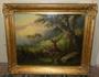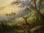 Obraz krajina s jelenem.Olejomalba na plátně.Kdysi restáurováno a platno odborně nažehleno na plátně.2.pol.19.století.Signováno Skála Valentín.Celkový rozměr 85cm x 73cm.Vnitřní rozměr70cm x 56cm.