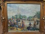 Starožitný obraz v krásném zdobném rámu - Na trhu - olrj na plátně, signováno vpravo dole. Maďarský malíř . Rozměry plátna 39,5 cm x 34,5 cm .