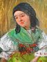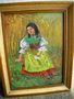 obrázek, olej na kartonu, Krojované děvče, odpočívající v obilí, vlevo dole podpis J.Jáchym, obrázek je v původním zlaceném rámu o rozměru celkem 32 x 25 cm, malíř Jan Jáchym, narozený v roce 1874 v Horažďovicích, byl žákem Schwaigrovým, stoupenec impresionismu, ač jeho starší práce jsou malované naturalisticky, jako například tento. Mnohé jeho obrazy jsou v Muzeu v Klatovech i v Horažďovicích