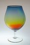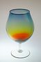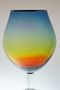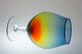 Jedinečně barevná obří číše ze skla ve spektru barev duhy, stojící na nožce z čirého skla a dekorovaná zlatými proužky. Autorem je sklářský výtvarník Jan GABRHEL ( *1930 ) a provedly sklárny Chlum u Třeboně, dobrý stav, rozměr - v. 24cm, prům. 15cm