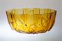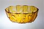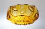 Stylová žardiniera ve výrazném tvarosloví ART - DECO z krásně barevného ambrového ručně lisovaného skla. Žebrování je zvýrazněné střídavě jemným rastrem s vystouplým dekorem lístků. Žardiniera má vespod hvězdici, pravděpodobně ji provedla některá z krystalerií v Jizerských horách ve 30tých letech. Dobrý stav, rozměr - š. 26 x 15 x 11cm