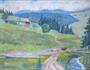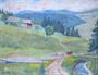 Olej na plátně 66 cm x 81,5 cm. Signováno vlevo dole s datací 40. Autor: Oldřich Lasák (1884-1968). Kopcovitá krajina Beskyd s horskou usedlostí uprostřed luk a lesů s dvojicí koní při vláčení malého pole. Morava, rok 1940. Celkový rozměr s rámem 84,5 cm x 99,5 cm.
