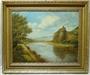 Reprezentativní obraz v masivním rámu, historizující romantický krajinářský motiv se středověkým hradem Střekov ( něm. Schreckenstein ) na skalisku tyčícím se nad řekou Labe, olejomalba na plátně šepsovaném na dřevěné desce, úctyhodných celkových rozměrů 96 x 80cm. Krajinu oživuje plachetnice plující po řece a na pozadí je patrný zámeček Větruše, hrad a obloha se zrcadlí na vodní hladině. Autorem je berlínský malíř Alfred OTTO ( *1873 +1953 ) převážně ryzí krajinář a malíř horských scenérií, signováno a dat. p.d. Rám i obraz ve velmi dobrém stavu ihned k vystavení v interieru, rozměr díla 75 x 60cm