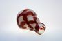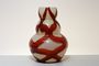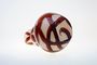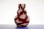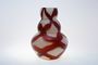 Secesní váza z opálového skla s kosočvercovým ornamentem ze zataveného rubínového skla, stupňovitě se rozšiřující tvar. Sklo z počátku minulého století, severní Čechy. Bez poškození, rozměr v. 18cm, prům. 14cm