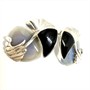 Výrazné, větší náušnice se zapínáním na puzetu. Zdobeno chalcedonem a černým onyxem. Stříbro ryzosti 925/1000. Celková váha 10,50 g. Rozměry cca 2,5 x 2 cm. Originální náušnice nesoucí přírodní motiv v perfektním stavu.