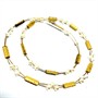 Půvabný, jemný, osobitý náhrdelník ze zlaceného stříbra zdobený bílými perlami. Sterlingové stříbro (925/1000), celková váha 10,76g. Délka 43 cm. Lanko ze zlaceného obecného kovu. Originální, velmi příjemně nositelný šperk ve výborném stavu.