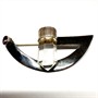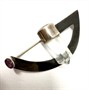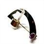 Originální, stříbrná brož. Šperk zdobí krystal horského křišťálu a drobný, fazetově broušený ametyst. Centrální část šperku je obzvláštněna ztmavením díky povrchovému potažení rhuteniem. Brož je vyrobena ze sterlingového stříbra (925/1000), celková váha 6,47g. Jehla obecný kov. Rozměry cca 5 x 2 cm. Perfektní stav.