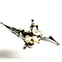 Originální, půvabná stříbrná brož. Šperk zhotovený ze stříbra sterlingové ryzosti (925/1000), o celkové váze 7,39 g. Jehla a zapínání z obecného kovu. Šperk zdobí bílé říční perly s almandinem, navzájem uskupené v květ. Délka brože 6 cm. Šperk byl profesionálně vyleštěn a je v perfektním stavu.
