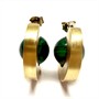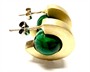 Originální náušnice ze zlaceného stříbra zdobené malachytovou kuličkou. Náušnice byly zhotoveny ze stříbra sterlingové ryzosti (925/1000), o celkové váze 8,28 g. Průměr 1,9 cm. Povrch zdoben jemným matováním. Vyčištěno zlatníkem, výborný stav.